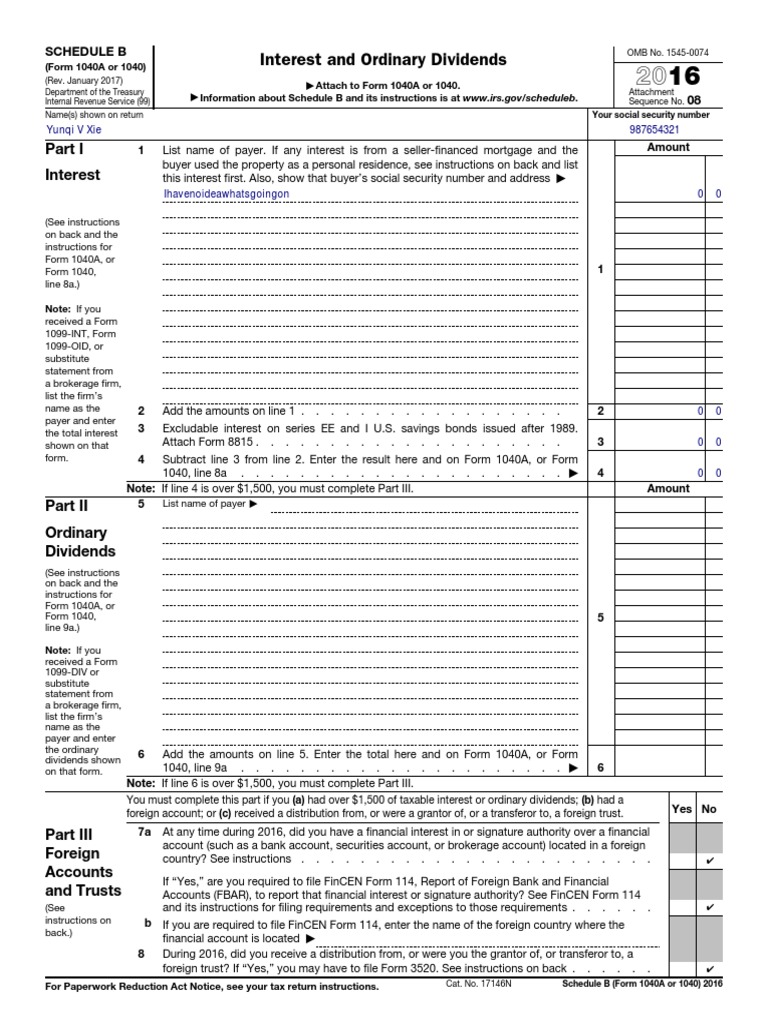 2016 Form 1040a or 1040 Schedule B Irs Tax Forms Bonds (Finance)