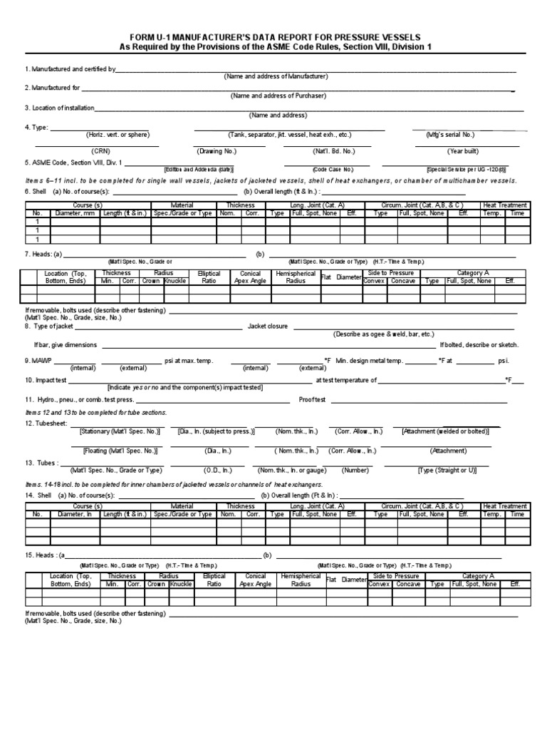 Asme Form U1. v11201 A Gas Technologies Mechanical Engineering