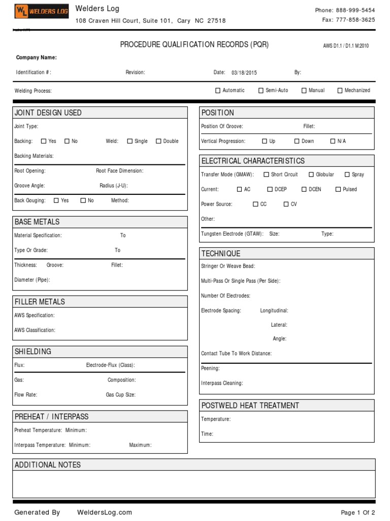 (PDF) Figure 5.14—Procedure Qualification Record (PQR) Form Procedure