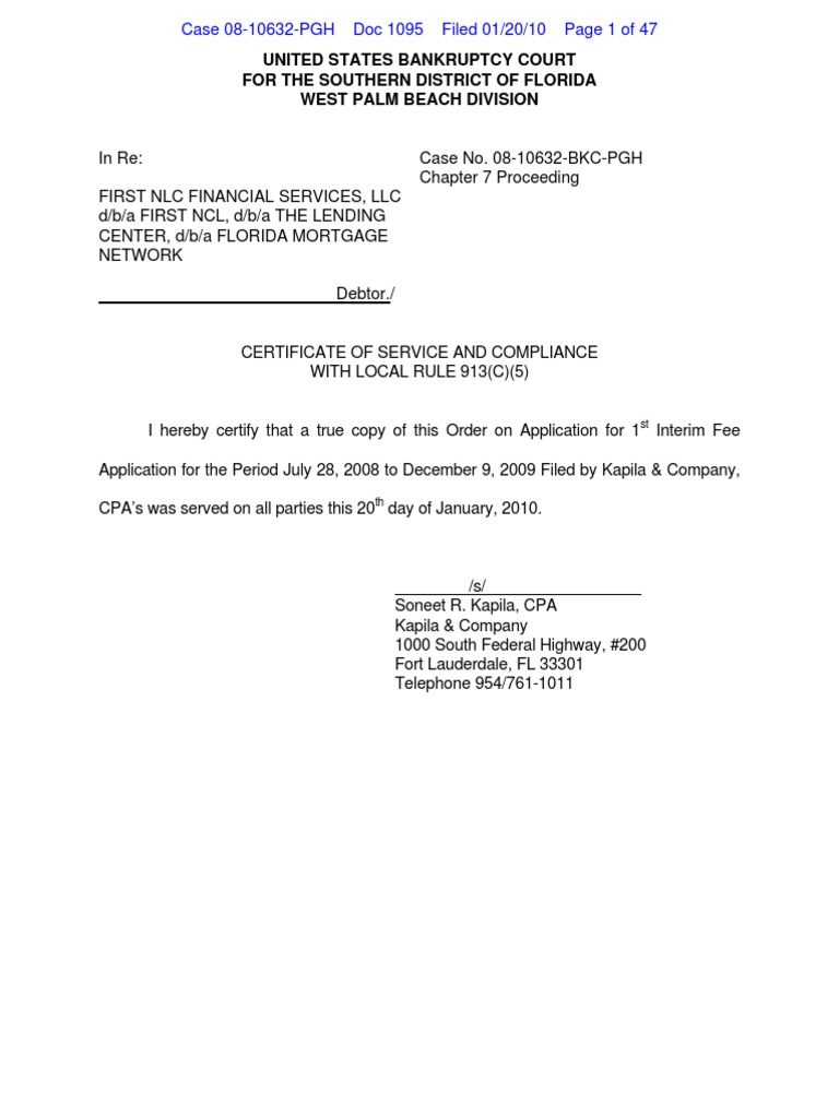 Bankruptcy Certificate Of Service Form