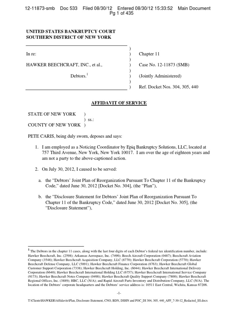 Affidavit of Service PDF Chapter 11 Bankruptcy In The United States