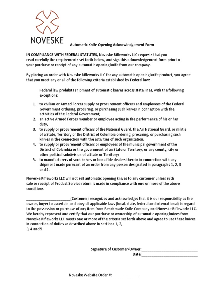 Automatic Knife Opening Acknowledgement Form Federal Government Of