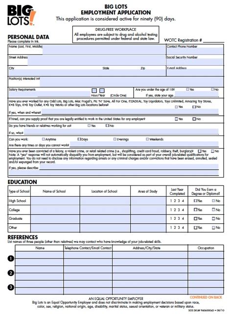 Big Lots Job Application Form