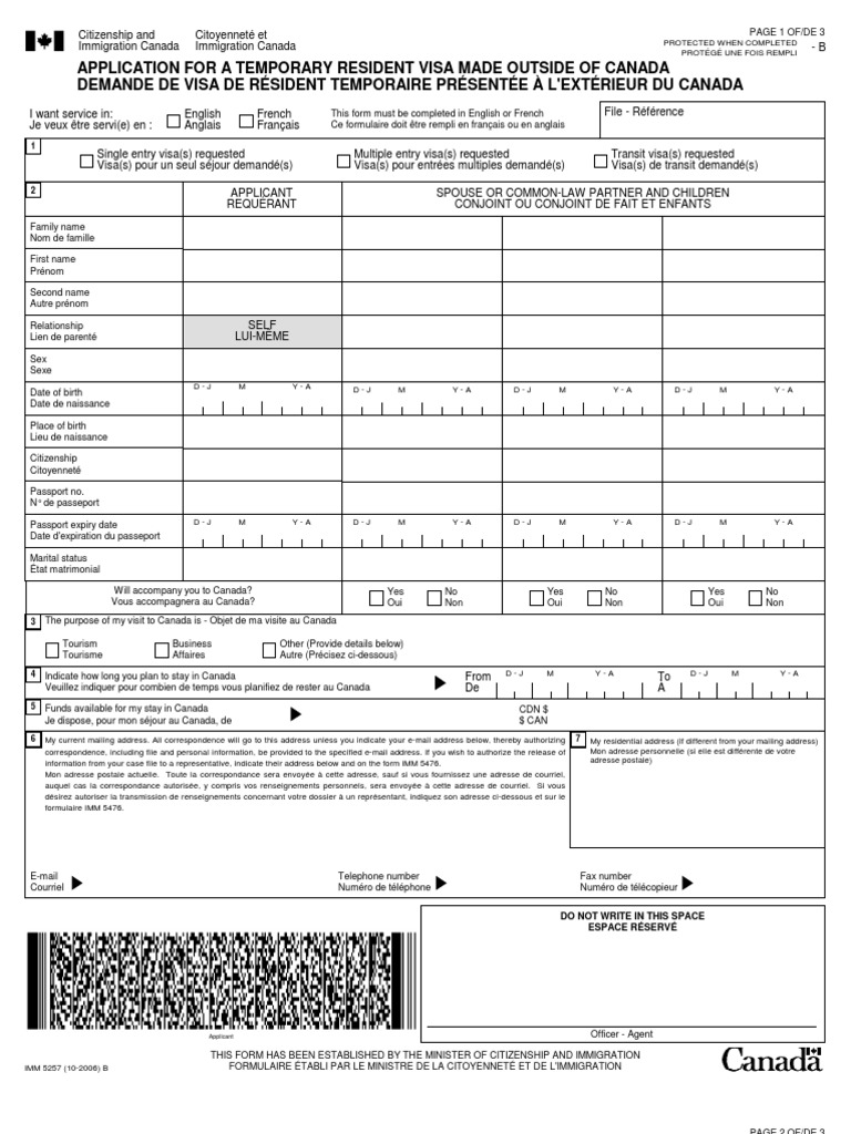 Canada Immigration Forms IMM5257B Visa (Document)