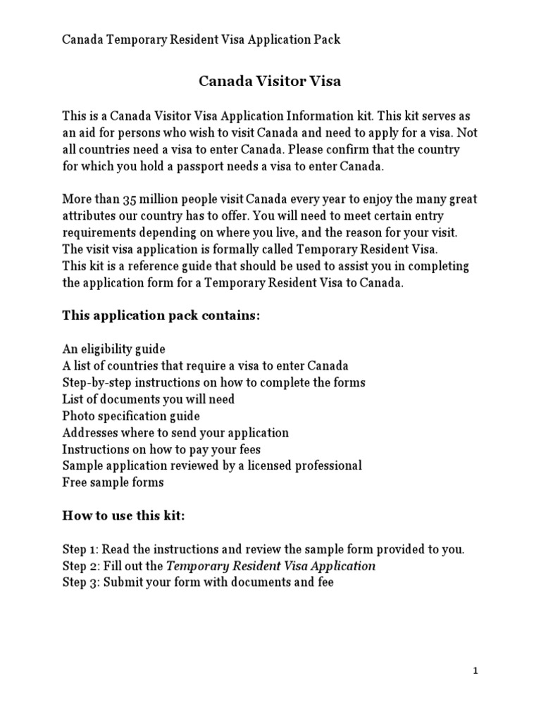 Canada Visitor Visa Application Pack 3wver6 Travel Visa Government