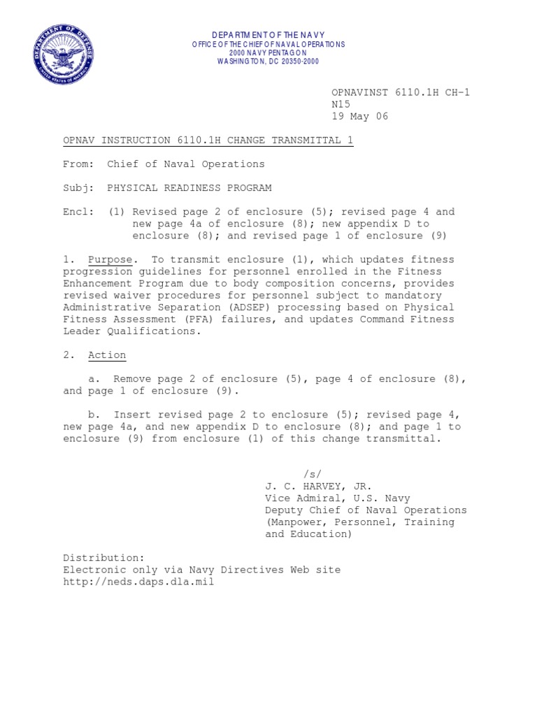 OPNAVINST 6110.1 Physical Readiness Program United States Navy