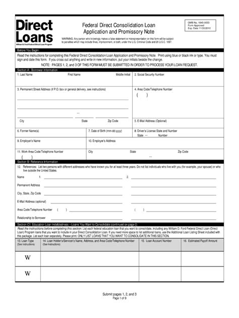 Federal Direct Consolidation Loan Application and Promissory Note