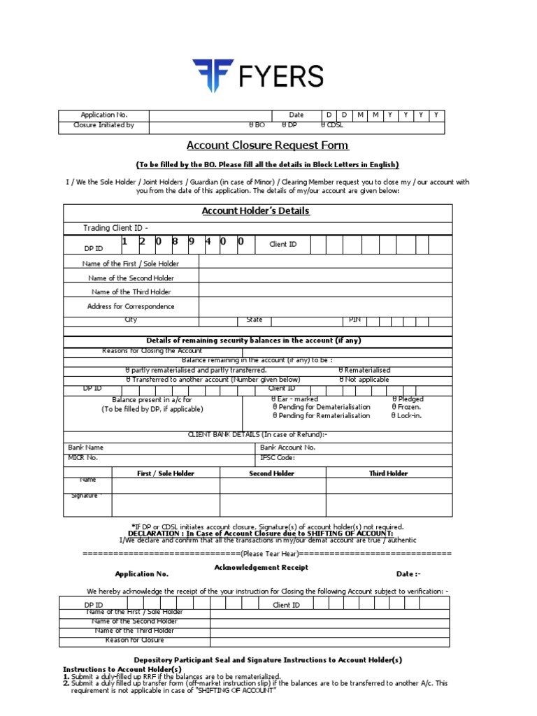 Demat Closure Form FYERS PDF Financial Services