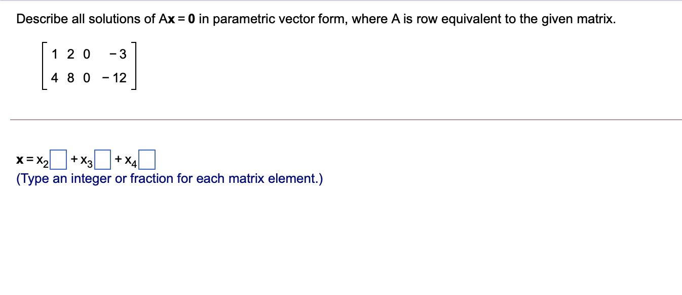 Describe All Solutions Of Ax 0 In Parametric Vector Form