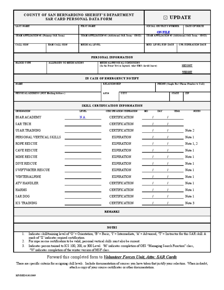 Sar Card Form Update 090202 Search And Rescue Public Services