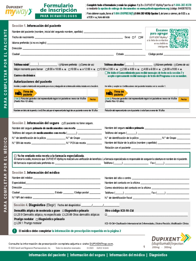 Dupixent Myway Enrollment Form Dermatologist Spanish PDF Medicare