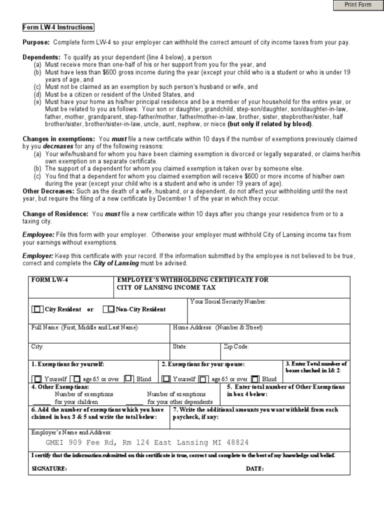 Lansing W4 Withholding Tax Tax Exemption Free 30day Trial Scribd