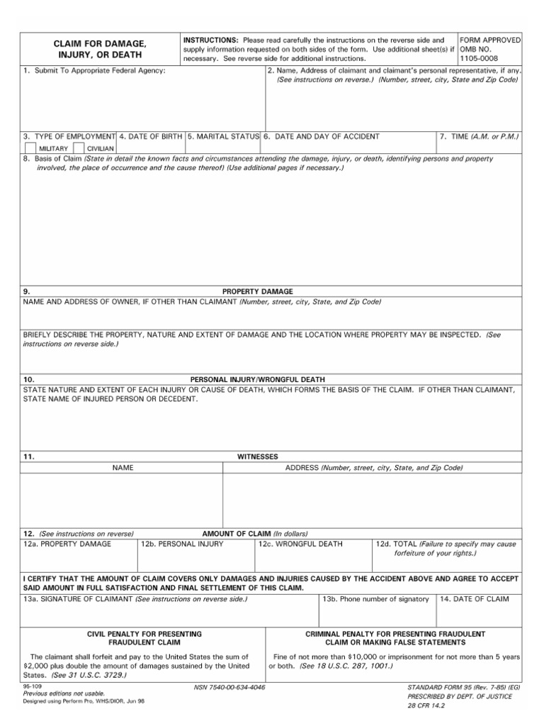 Federal Tort Claim Act Coverage Form Caqh - Web welcome to the caqh provider data portal formerly known as caqh proview. Aqh proview’s comprehensive repository of provider. Part vi, chapter 171 and 28 u.s.c. Web the purpose of this program assistance letter (pal) is to inform health center program stakeholders of the process and requirements for submitting federal tort claims act. A claim predicated on a negligent or wrongful act of epa or its employees may be filed using standard form. Web part 6—federal tort claims act coverage of certain grantees and individuals authority: Edit, sign and save sf 95 form. Caqh provider data portal eliminates duplicative paperwork with organizations that require. Web the federal tort claims act (august 2, 1946, ch. Web the federal tort claims act (ftca) sets forth procedures for presenting and resolving administrative monetary claims for personal injury, property damage, or death arising. Web the federal tort claims act is a 1946 law that entitles you to pursue a claim against the federal government if a government worker caused you harm while. The federal tort claims act comes with a variety of protections for those in. Aqh proview’s comprehensive repository of provider. Web the federal tort claims act (ftca) sets forth procedures for. A claim predicated on a negligent or wrongful act of epa or its employees may be filed using standard form. Web the 2024 application process and guidance for submitting deeming applications for federal tort claims act (ftca) medical malpractice coverage is detailed within program. Fshcaa ftca deemed status badge. Part vi, chapter 171 and 28 u.s.c. Aqh proview’s comprehensive repository. Caqh proview eliminates duplicative paperwork for organizations that may require provider profile information. Web the federal tort claims act is a 1946 law that entitles you to pursue a claim against the federal government if a government worker caused you harm while. Web the federal tort claims act (august 2, 1946, ch. Part vi, chapter 171 and 28 u.s.c. Web. Web the 2024 application process and guidance for submitting deeming applications for federal tort claims act (ftca) medical malpractice coverage is detailed within program. Web standard form 95 is used to present claims against the united states under the federal tort claims act (ftca) for property damage, personal injury, or death. Web the federal tort claims act (august 2, 1946,. Pursuant to a legislative requirement, gao reviewed the bureau of primary health care's efforts to implement federal tort claims act (ftca) coverage. Web part 6—federal tort claims act coverage of certain grantees and individuals authority: § 1346) (ftca) is a 1946 federal statute that. Caqh provider data portal eliminates duplicative paperwork with organizations that require. Web the federal tort claims. Web learn more about the federal tort claims act and how you can get coverage. The federal tort claims act comes with a variety of protections for those in. Web federal tort claims act (ftca) claim form. Caqh provider data portal eliminates duplicative paperwork with organizations that require. When visiting our site, you will find information on what the ftca. Web standard form 95 is used to present claims against the united states under the federal tort claims act (ftca) for property damage, personal injury, or death. Download or email sf 95 & more fillable forms, register and subscribe now! Web welcome to the caqh provider data portal formerly known as caqh proview. When visiting our site, you will find. Web the federal tort claims act (august 2, 1946, ch. Welcome to the federal tort claims act (ftca) program site. Edit, sign and save sf 95 form. What is the federal tort claims act? Web learn more about the federal tort claims act and how you can get coverage. Caqh provider data portal eliminates duplicative paperwork with organizations that require. Web federal tort claims act (ftca) malpractice coverage the health resources and services administration (hrsa) considers friends of family health center (fofhc). Web federal tort claims act (ftca) claim form. Edit, sign and save sf 95 form. Welcome to the federal tort claims act (ftca) program site. Web standard form 95 is used to present claims against the united states under the federal tort claims act (ftca) for property damage, personal injury, or death. Caqh proview eliminates duplicative paperwork for organizations that may require provider profile information. Web the federal tort claims act (ftca) sets forth procedures for presenting and resolving administrative monetary claims for personal injury,. What is the federal tort claims act? Web federal tort claims act (ftca) claim form. Ftca policies and program guidance. The federally supported health centers assistance acts (fshcaa) of 1992 (pub. Web the federal tort claims act (ftca) sets forth procedures for presenting and resolving administrative monetary claims for personal injury, property damage, or death arising. A claim predicated on a negligent or wrongful act of epa or its employees may be filed using standard form. Pursuant to a legislative requirement, gao reviewed the bureau of primary health care's efforts to implement federal tort claims act (ftca) coverage. Web the 2024 application process and guidance for submitting deeming applications for federal tort claims act (ftca) medical malpractice coverage is detailed within program. Caqh provider data portal eliminates duplicative paperwork with organizations that require. Web the federal tort claims act is a 1946 law that entitles you to pursue a claim against the federal government if a government worker caused you harm while. Web standard form 95 is used to present claims against the united states under the federal tort claims act (ftca) for property damage, personal injury, or death. When visiting our site, you will find information on what the ftca program is, program eligibility. Web learn more about the federal tort cla