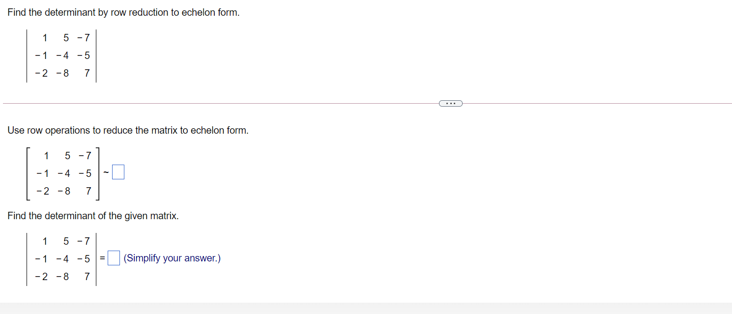 Solved Find the determinant by row reduction to echelon