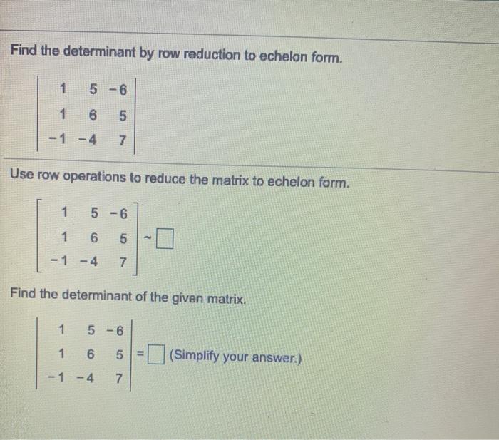 Solved Find the determinant by row reduction to echelon form