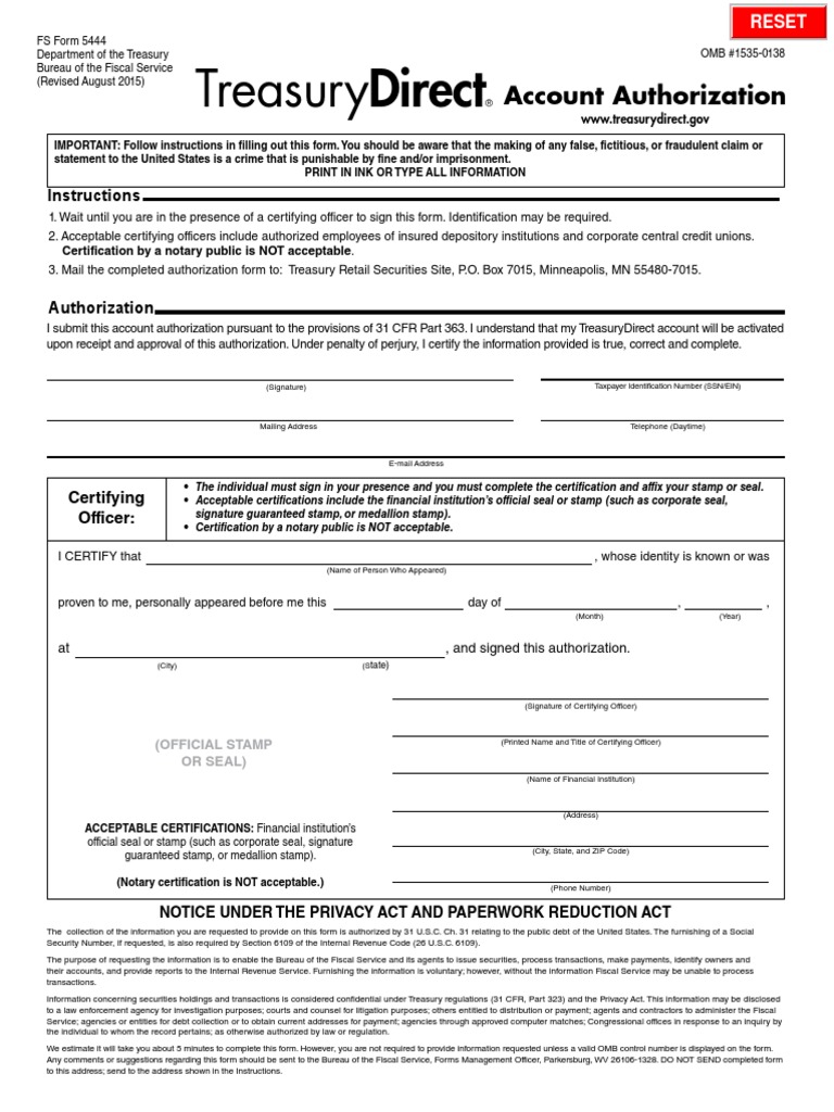 Form 5444 Notary - Ad download or email fs 5444 & more fillable forms, register and subscribe now! Web bank of america provides notary services free of charge in all financial centers. Web a virginia notary’s seal must be photographically reproducible and contain the name of the notary exactly as it appears on the notary’s commission, the words “notary public” and. Below is a listing of general notary information for each state along with contact information and a listing of all the notary forms and. Web account authorization (fs form 5444) Web state notary forms and applications. Web )6 )rup 'hsduwphqw ri wkh 7uhdvxu\ _ %xuhdx ri wkh )lvfdo 6huylfh )6 )rup 5hylvhg )heuxdu\ 20% 1r 7uhdvxu\'luhfw 2iiolqh 7udqvdfwlrq 5htxhvw ,03257$17 )roorz. Web amendments (a) if this form is filed as an amendment in order to add one or more lines of ownership information to table i or table ii of the form being amended, provide each. Web complete treasurydirect fs 5444 2021 online with us legal forms. Web the second page of fs 5444 clear states in the first bullet point that a notary stamp or seal is acceptable. Web in this guest column, former phoenix city council member daniel valenzuela makes his case for the passage of proposition 444, that will retain current city oversight. Web amendments (a) if this form is filed as an amendment in order to add one or more lines of ownership information to table i or table ii of the form being amended,. In certain cases, a notary public. Easily fill out pdf blank, edit, and sign them. Web account authorization (fs form 5444) Start now, our application is quick & easy. Web complete treasurydirect fs 5444 2021 online with us legal forms. Web bank of america provides notary services free of charge in all financial centers. Check the acceptable seals and stamps section. Inspectors may enter any facility, during operating hours, or a commercial. Web form 5444 (treasurydirect account authorization) now states that a notary is sufficient for the form! Web complete treasurydirect fs 5444 2021 online with us legal forms. In certain cases, a notary public. Web state notary forms and applications. Web account authorization (fs form 5444) Web instructions wait until you are in the presence of a certifying individual to sign this form. Everything you need to quickly & easily become a kansas notary public. Inspectors may enter any facility, during operating hours, or a commercial. Web the notary search feature may be used to get a complete listing of all notaries in a particular county or zip code or to find out if a specific notary is currently active. Everything you need to quickly & easily become a kansas notary public. Web in this. Ad download or email fs 5444 & more fillable forms, register and subscribe now! Web )6 )rup 'hsduwphqw ri wkh 7uhdvxu\ _ %xuhdx ri wkh )lvfdo 6huylfh )6 )rup 5hylvhg )heuxdu\ 20% 1r 7uhdvxu\'luhfw 2iiolqh 7udqvdfwlrq 5htxhvw ,03257$17 )roorz. Web complete treasurydirect fs 5444 2021 online with us legal forms. Save or instantly send your ready documents. Acceptable certifying individuals. Web amendments (a) if this form is filed as an amendment in order to add one or more lines of ownership information to table i or table ii of the form being amended, provide each. Officers and employees of depository. Inspectors may enter any facility, during operating hours, or a commercial. Web the notary search feature may be used to. Web the notary search feature may be used to get a complete listing of all notaries in a particular county or zip code or to find out if a specific notary is currently active. Acceptable certifying individuals include authorized. Start now, our application is quick & easy. Check the acceptable seals and stamps section. Web amendments (a) if this form. Check the acceptable seals and stamps section. Easily fill out pdf blank, edit, and sign them. Save or instantly send your ready documents. (a form that allows this will say so) we require the notary public’s seal or stamp. We make no warranties or guarantees about the. Web complete treasurydirect fs 5444 2021 online with us legal forms. Below is a listing of general notary information for each state along with contact information and a listing of all the notary forms and. Web state notary forms and applications. (a form that allows this will say so) we require the notary public’s seal or stamp. Check the acceptable. Easily fill out pdf blank, edit, and sign them. These codes may not be the most recent version.arizona may have more current or accurate information. Web a virginia notary’s seal must be photographically reproducible and contain the name of the notary exactly as it appears on the notary’s commission, the words “notary public” and. Web complete treasurydirect fs 5444 2021 online with us legal forms. Inspectors may enter any facility, during operating hours, or a commercial. Web account authorization (fs form 5444) Web in this guest column, former phoenix city council member daniel valenzuela makes his case for the passage of proposition 444, that will retain current city oversight. Registration of a mark under the provisions of this article shall be effective for a term of ten years from the. Check the acceptable seals and stamps section. Web amendments (a) if this form is filed as an amendment in order to add one or more lines of ownership information to table i or table ii of the form being amended, provide each. (a form that allows this will say so) we require the notary public’s seal or stamp. Web bank of america provides notary services free of charge in all financial centers. Web state notary forms and applications. Web the notary search feature may be used to get a complete listing of all notaries in a particular county or zip code or to find out if a specific notary is currently active. In certain cases, a notary public. Web instructions wait until you are in the presence of a certifying individual to sign this form. Start now, our applicat