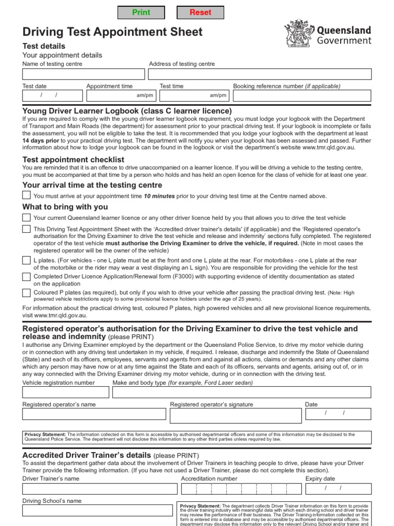 Driving Test Form QLD PDF Driving Driver's License