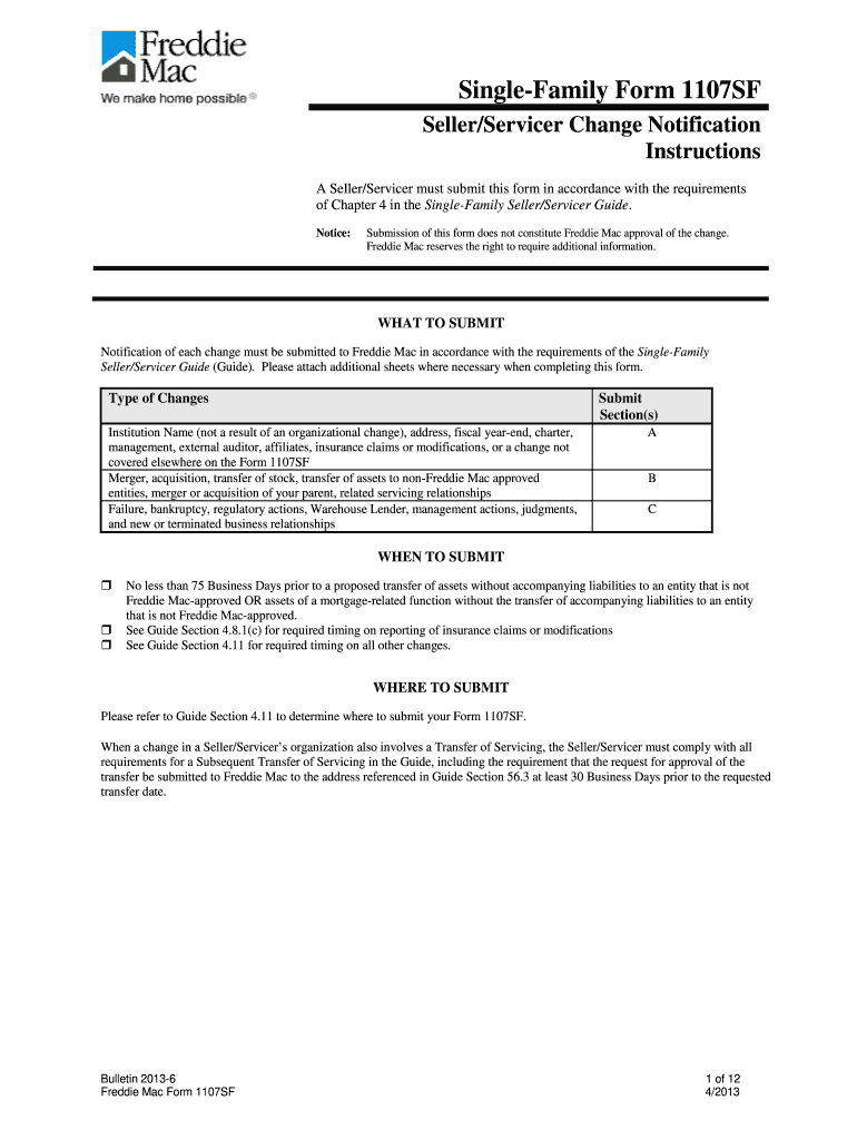 2013 Form Freddie Mac 1107SF Fill Online, Printable, Fillable, Blank