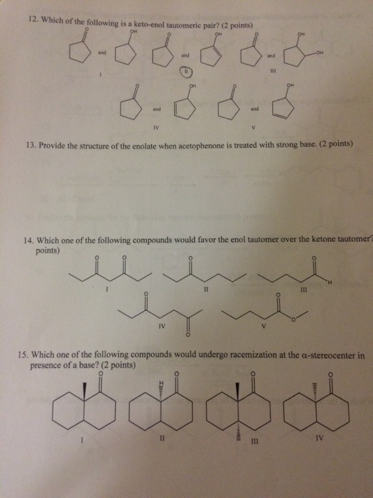 Solved 12. Which of the following is a ketoenol tautomeric