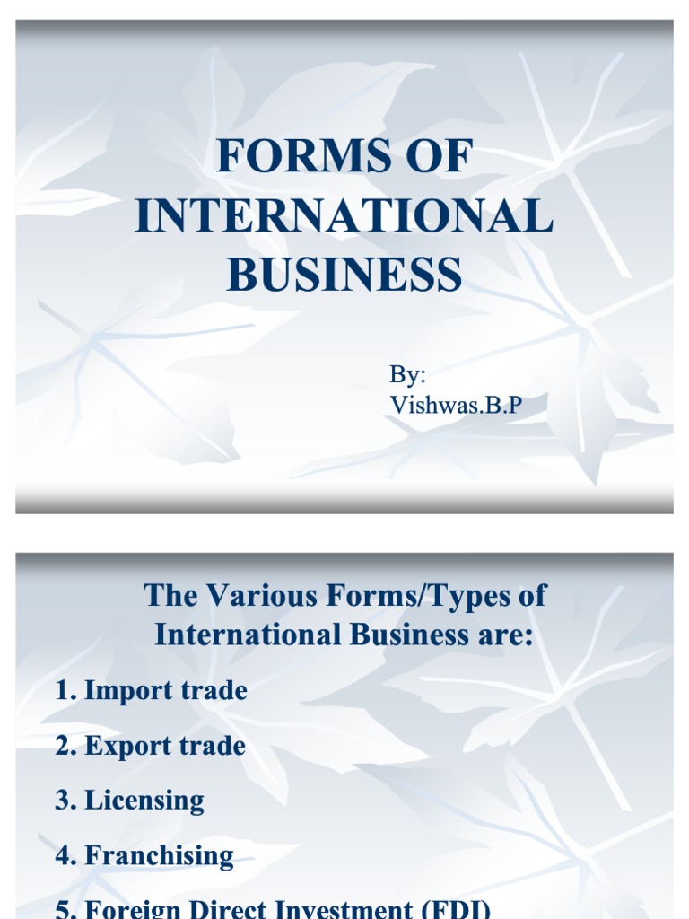 Forms of International Business Franchising Exports