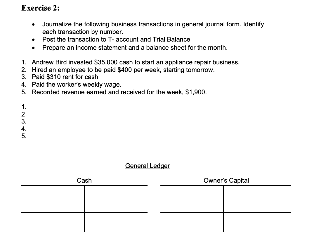 Solved Exercise 2 Journalize the following business