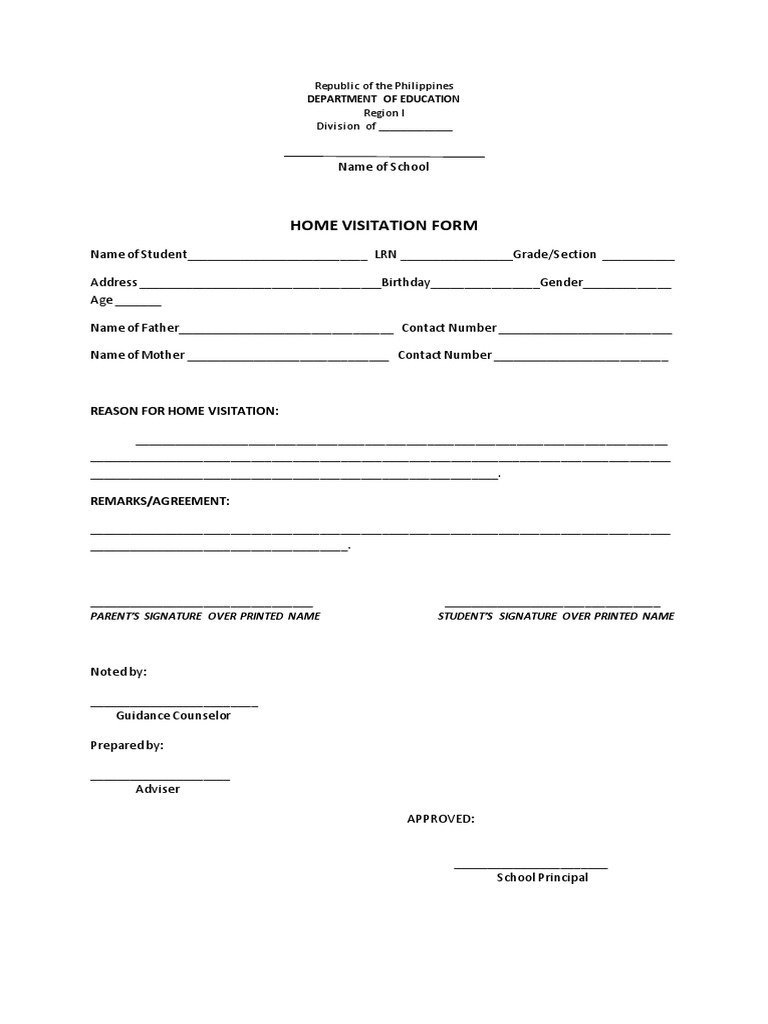 Home Visitation Form PDF Schools