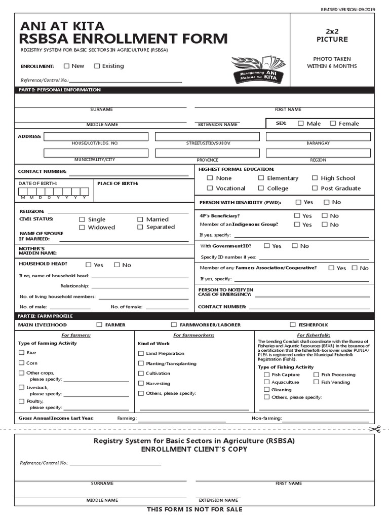 RSBSA Enrollment Form PDF Farms Livestock