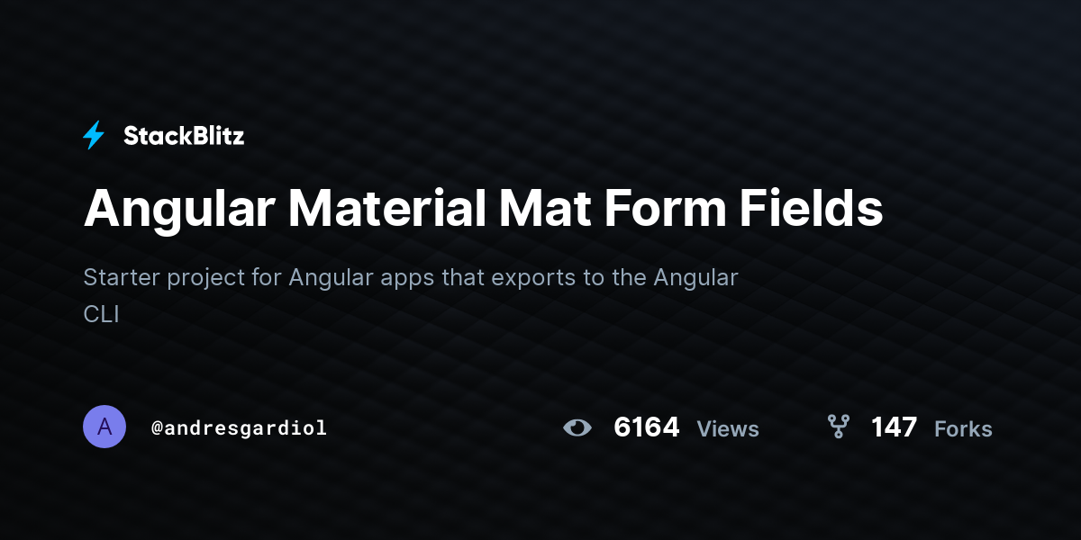 Angular Material Mat Form Fields StackBlitz