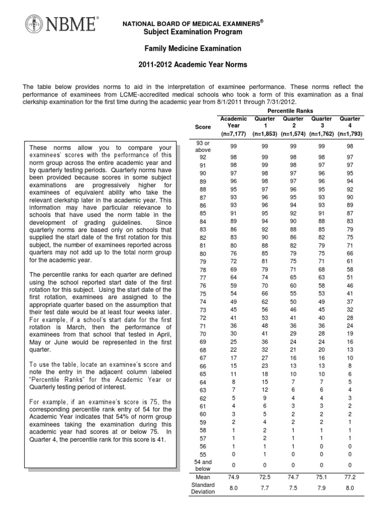 NBME Percentiles Percentile Test (Assessment)