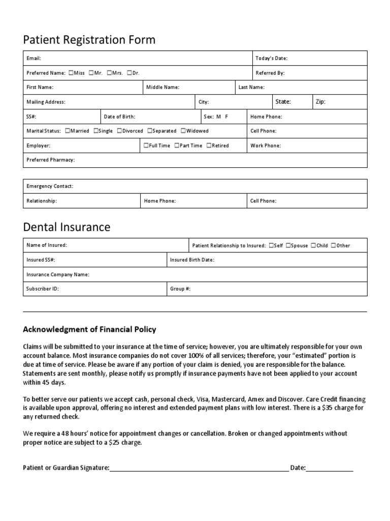 Patient Registration Form Acknowledgment of Financial Policy
