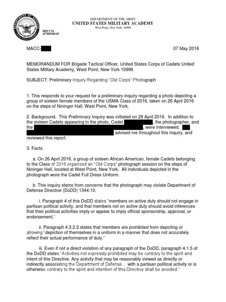 Preliminary Inquiry REDACTED United States Military Academy Uniform