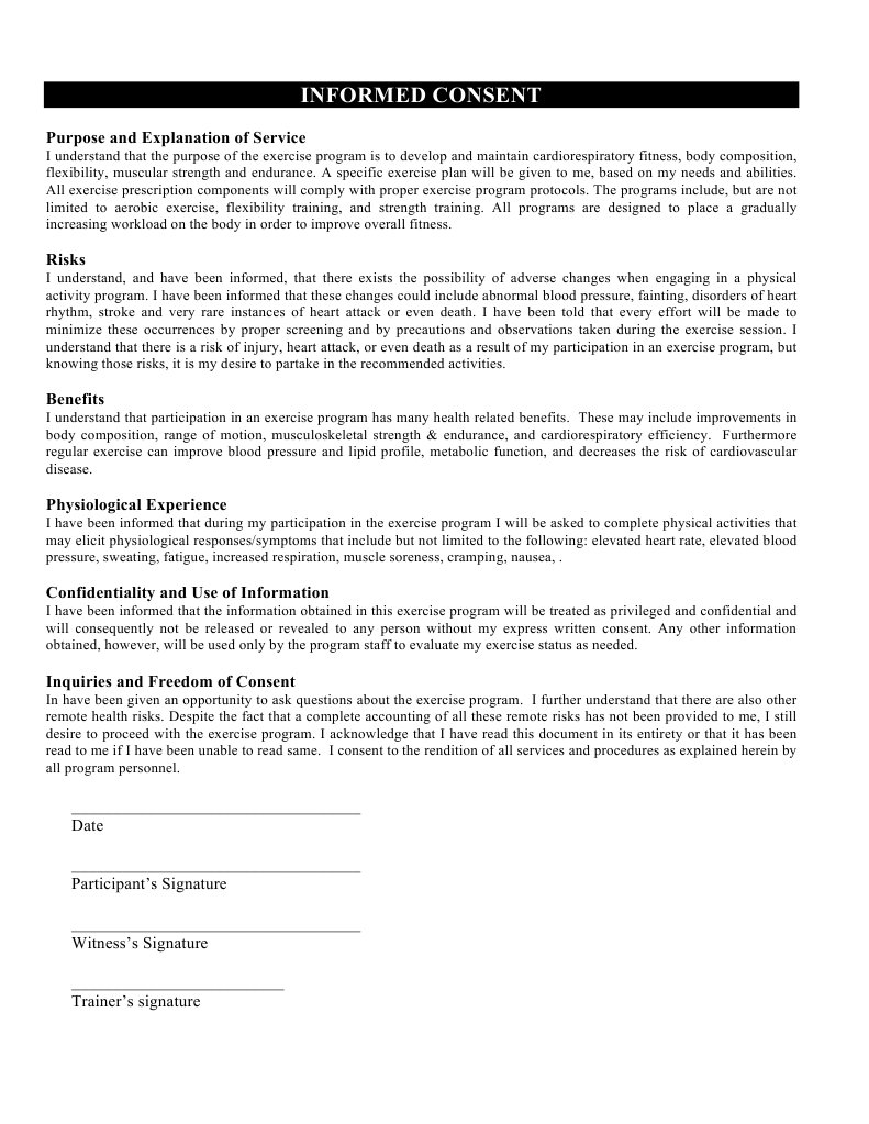 Informed Consent Form For Fitness Tests PDF