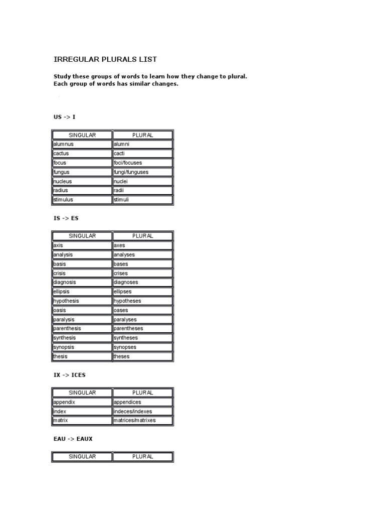 Irregular Plurals Irregular Plurals Noun in English English Grammar