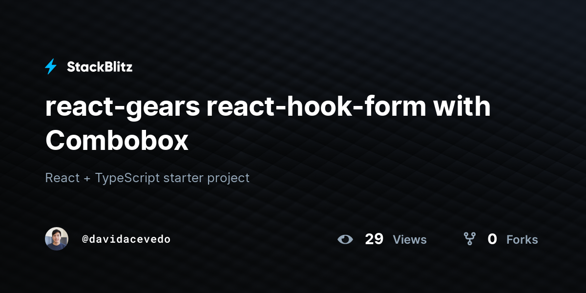 reactgears reacthookform with Combobox StackBlitz