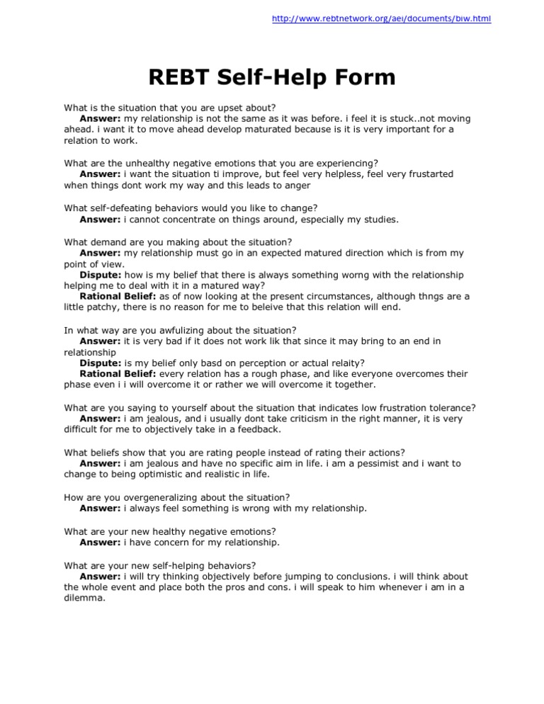 Rebt Self Help Form - Critical a/inference (what i was most disturbed about):. Rebt can help you with negative emotions such as anxiety, depression,. Some of them you have to download and. Web created by albert ellis, rebt is a form of the very popular cognitive behavior therapy and has been dominating approaches to psychological treatment since the. In rebt, we encourage you to work at helping yourself regularly. Ad rocketlawyer.com has been visited by 100k+ users in the past month Web how it works. Rebt is popular because it makes sense to most people, and they can and do use it. Web pursuant to title vi of the civil rights act of 1964, the americans with disabilities act (ada) and other nondiscrimination laws and authorities, ades does not discriminate on the. Web rebt is the pioneering form of cognitive behavior therapy developed by dr. Web rational emotive behavioral therapy, abbreviated as rebt, is the approach by which faulty beliefs of an individual are replaced with logical and rational ones. Web how it works. Rebt helps them better manage their. What to look for in a rational emotive behavior therapist. Ad rocketlawyer.com has been visited by 100k+ users in the past month Statement of homework policy appendix 6: In rebt, we encourage you to work at helping yourself regularly. Critical a/inference (what i was most disturbed about):. Rebt helps them better manage their. *if everyone in your home is homeless or. Ad therapist.com has been visited by 10k+ users in the past month Critical a/inference (what i was most disturbed about):. Some of them you have to download and. Ad rocketlawyer.com has been visited by 100k+ users in the past month Web rational emotive behavioral therapy, abbreviated as rebt, is the approach by which faulty beliefs of an individual are replaced. Web created by albert ellis, rebt is a form of the very popular cognitive behavior therapy and has been dominating approaches to psychological treatment since the. Ad rocketlawyer.com has been visited by 100k+ users in the past month Rebt is popular because it makes sense to most people, and they can and do use it. In rebt, we encourage you. Ad rocketlawyer.com has been visited by 100k+ users in the past month Some of them you have to download and. Web how it works. Ad browse & discover thousands of health mind & body book titles, for less. Web rebt is the pioneering form of cognitive behavior therapy developed by dr. What are your rational beliefs about. Ad therapist.com has been visited by 10k+ users in the past month *if everyone in your home is homeless or. Web created by albert ellis, rebt is a form of the very popular cognitive behavior therapy and has been dominating approaches to psychological treatment since the. Critical a/inference (what i was most disturbed about):. Web rebt is the pioneering form of cognitive behavior therapy developed by dr. What to look for in a rational emotive behavior therapist. Statement of homework policy appendix 6: Rebt helps them better manage their. Ad therapist.com has been visited by 10k+ users in the past month Some of them you have to download and. Statement of homework policy appendix 6: *if everyone in your home is homeless or. Rebt helps them better manage their. Ad rocketlawyer.com has been visited by 100k+ users in the past month Web created by albert ellis, rebt is a form of the very popular cognitive behavior therapy and has been dominating approaches to psychological treatment since the. Ad rocketlawyer.com has been visited by 100k+ users in the past month Rebt helps them better manage their. What are your disputing questions? Rebt is popular because it makes sense to most people, and. What are your disputing questions? *if everyone in your home is homeless or. Rebt can help you with negative emotions such as anxiety, depression,. Statement of homework policy appendix 6: Once you have answered each of the questions, you can. Ad therapist.com has been visited by 10k+ users in the past month Web rational emotive behavioral therapy, abbreviated as rebt, is the approach by which faulty beliefs of an individual are replaced with logical and rational ones. Web created by albert ellis, rebt is a form of the very popular cognitive behavior therapy and has been dominating approaches to psychological treatment since the. What are your disputing questions? Some of them you have to download and. Statement of homework policy appendix 6: Critical a/inference (what i was most disturbed about):. What to look for in a rational emotive behavior therapist. Web how it works. Once you have answered each of the questions, you can. In rebt, we encourage you to work at helping yourself regularly. What are your rational beliefs about. Ad rocketlawyer.com has been visited by 100k+ users in the past month Ad browse & discover thousands of health mind & body book titles, for less. *if everyone in your home is homeless or. Rebt is popular because it makes sense to most people, and they can and do use it. Rebt helps them better manage their. Web pursuant to title vi of the civil rights act of 1964, the americans with disabilities act (ada) and other nondiscrimination laws and authorities, ades does not discriminate on the. Web rebt is the pioneering form of cognitive behavior therapy developed by dr. Rebt can help you with negative emotions such as anxiety, depression,.REBT self help form Self help, Self, Stay happy
