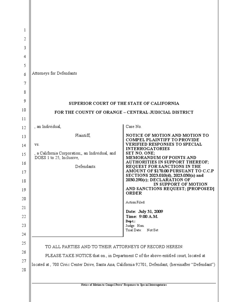 Sample California motion to compel responses to special interrogatori…