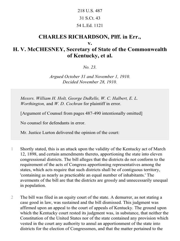 Richardson v. McChesney, 218 U.S. 487 (1910) United States Congress