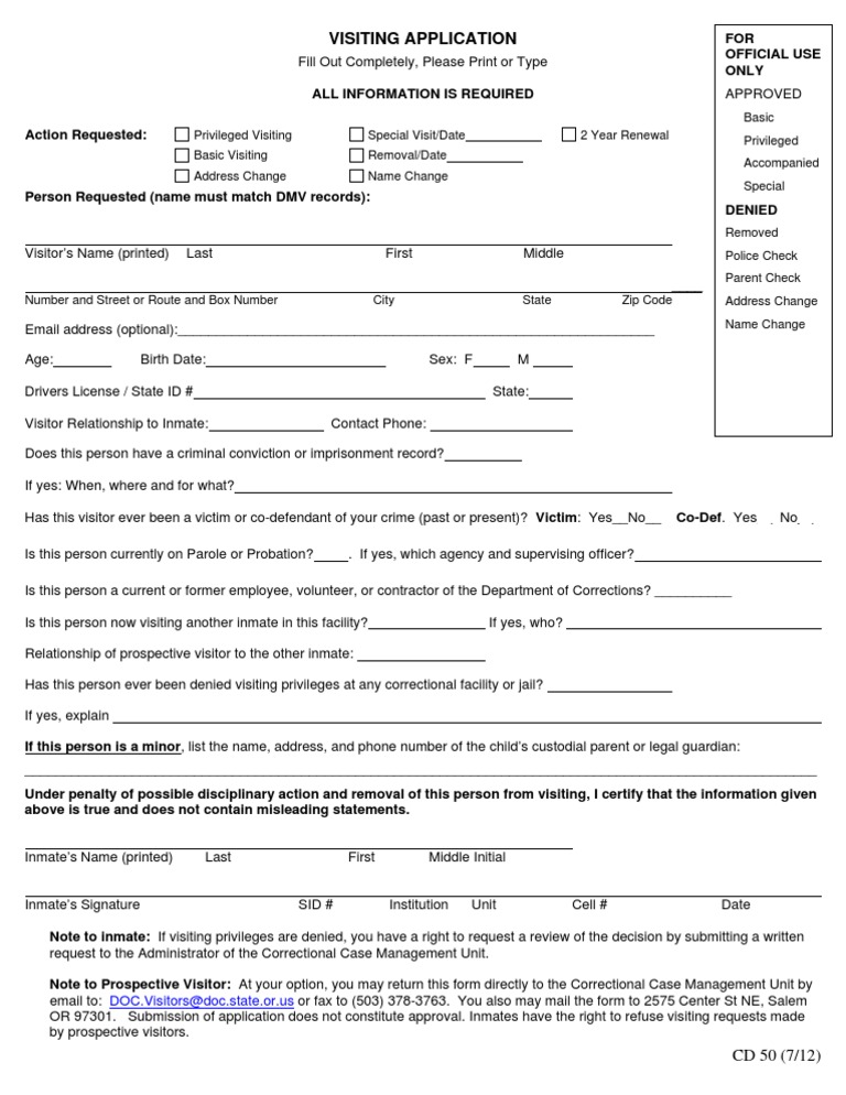 EOCI TYTY 50 Visiting Application Revised 0712 Prison Criminal