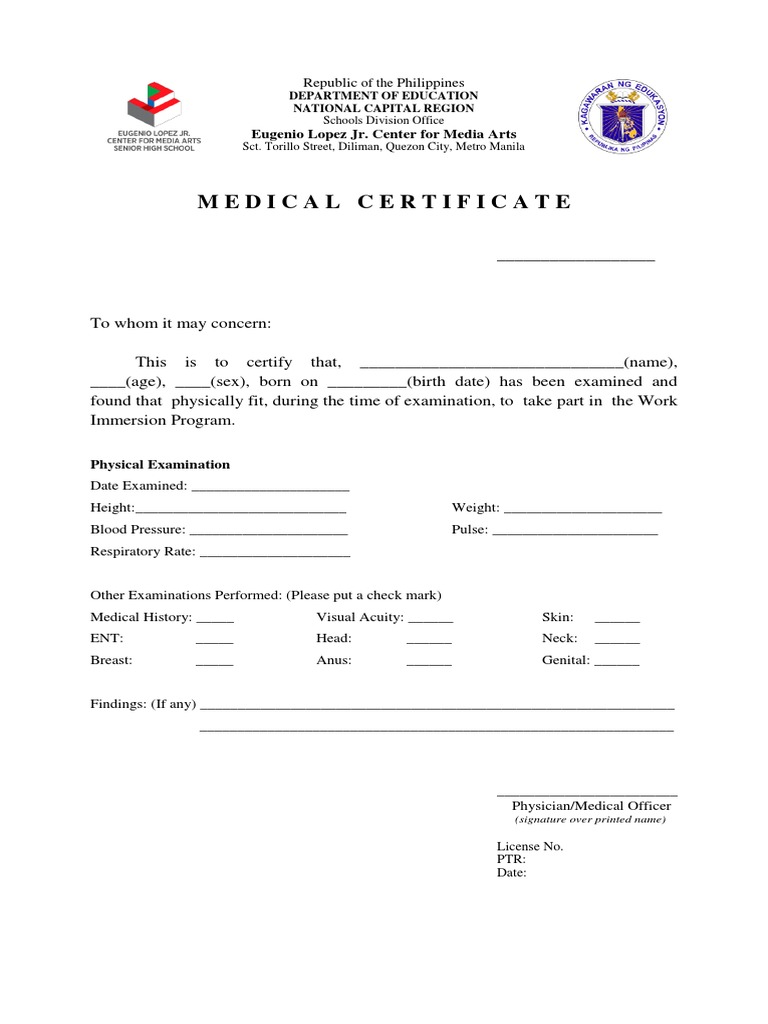 Ss Medical Certificate Form Med-01688