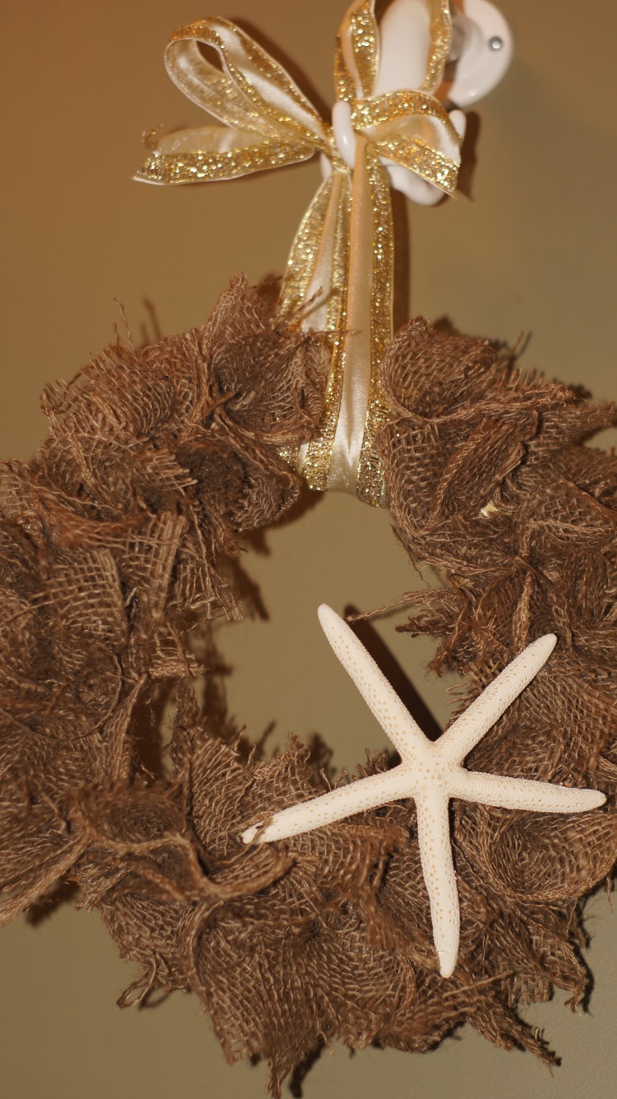 Polkadots, Books and Jello! Burlap Starfish Wreath Craft