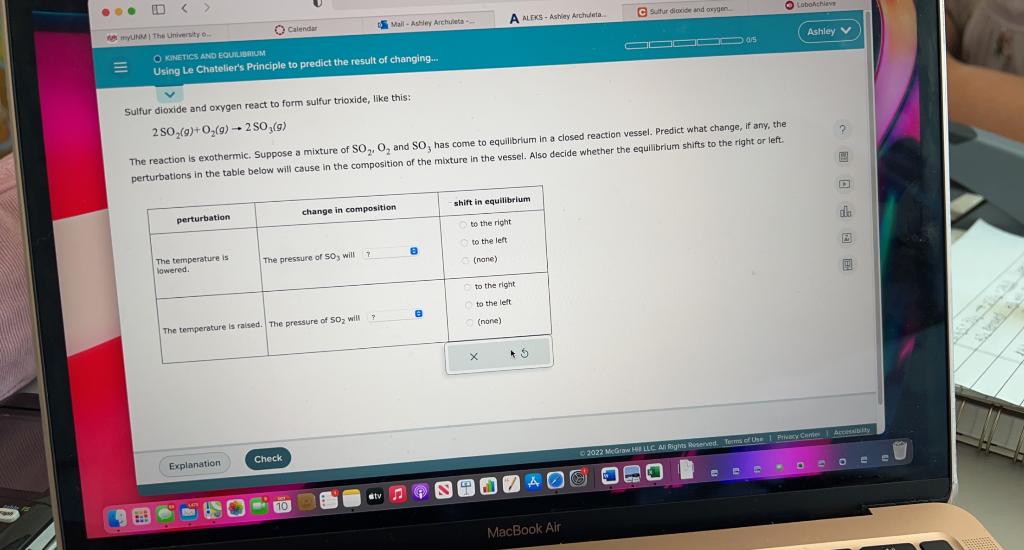 Sulfur dioxide and oxygen react to form s... Physical Chemistry