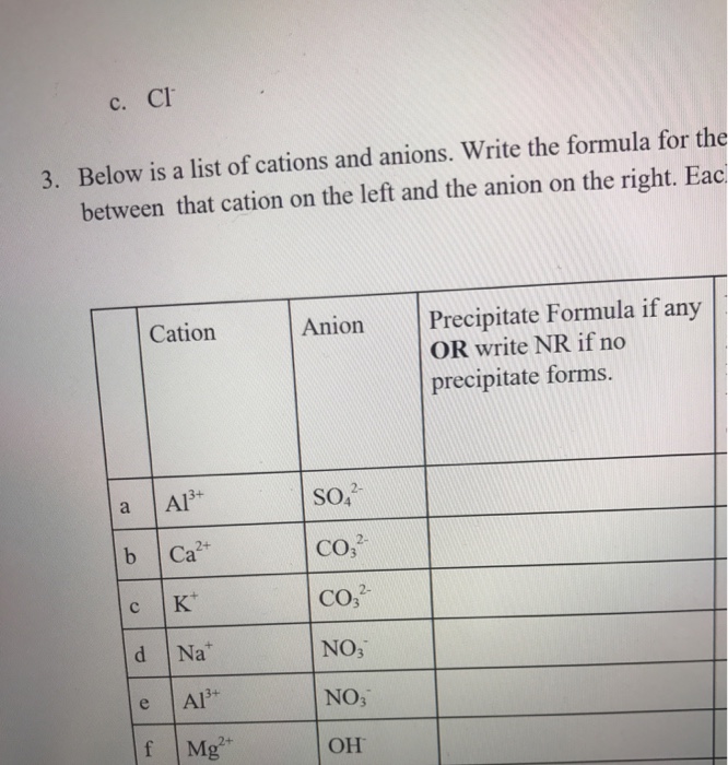Solved Below is a list of cations and anions . Write the