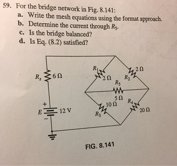 Solved For the bridge network in Fig. 8.141 Write the mesh