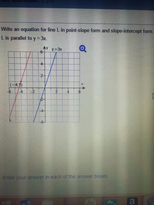 Write An Equation For Line L In Point Slope Form - If line l passes through the point ( x 0, y 0) and has slope m, then the equation of the line is. The calculator also has the ability to. Web the equation point slope calculator will find an equation in either slope intercept form or point slope form when given a point and a slope. For example, your slope (m) is 3 and your point (a,b) is 9,10. Web math geometry input data :coordinates `(x_a, y_a)` = (5, 4)slope (m) = 8objective :find slope of a straight line? L is perpendicular to y = 2x. Let's have a look at two exercises, to understand the topic more clearly. Without doing any calculations, what are the values of m,x0, and y0 in the point. Web you can't learn about linear equations without learning about slope. Consider the equation y =−3x−1 y = − 3 x − 1. Web a linear equation is a mathematical equation that describes the location of the points on a line in terms of their coordinates. James stewart, lothar redlin, saleem watson. Web algebra and trigonometry (mindtap course list) algebra. Write an equation for line. There are many ways to think about slope. Web it is used to write equations when you only have your slope and a point. Web expert answer transcribed image text: Probability using permutations and combinations Web math geometry input data :coordinates `(x_a, y_a)` = (5, 4)slope (m) = 8objective :find slope of a straight line? For example, your slope (m) is 3 and your point (a,b) is 9,10. We can move from one form to another using basic algebra. Write an equation for line. Ad custom tests & quizzes in minutes. Ayy 4x (simplify your answer. Web math geometry input data :coordinates `(x_a, y_a)` = (5, 4)slope (m) = 8objective :find slope of a straight line? Y − y 0 = m ( x − x 0) this form of the. Web a linear equation is a mathematical equation that describes the location of the points on a line in terms of their coordinates. Let's have a look at two exercises, to understand the topic more clearly. The slope of a line is 2. If line. L is parallel to y = 4x. Web math geometry input data :coordinates `(x_a, y_a)` = (5, 4)slope (m) = 8objective :find slope of a straight line? L is perpendicular to y = 2x. Y − y 0 = m ( x − x 0) this form of the. Consider the equation y =−3x−1 y = − 3 x −. Write an equation for line. L is perpendicular to y = 2x. Y − b = m ( x − a ) when an equation is written in this form, m gives the slope of the line and ( a , b ) is a point the line passes through. What are the forms of line equation?. We can move from one form to another using basic algebra. You'll get a detailed solution from a subject matter expert that helps you learn core concepts. Ayy 4x (simplify your answer. The calculator also has the ability to. Consider the equation y =−3x−1 y = − 3 x − 1. What are the forms of line equation? The slope of a line is 2. The slope of a line is the steepness of the line. Web you can't learn about linear equations without learning about slope. You'll get a detailed solution from a subject matter expert that helps you learn core concepts. L is perpendicular to y = 2x. The calculator also has the ability to. Web a linear equation is a mathematical equation that describes the location of the points on a line in terms of their coordinates. You'll get a detailed solution from a subject matter expert that helps you learn core concepts. For example, your slope (m) is 3. Web math geometry input data :coordinates `(x_a, y_a)` = (5, 4)slope (m) = 8objective :find slope of a straight line? L is perpendicular to y = 2x. Web algebra and trigonometry (mindtap course list) algebra. Slope = 8, passing through (4, −1) 35. We can move from one form to another using basic algebra. L is perpendicular to y 4x. Slope = 8, passing through (4, −1) 35. If line l passes through the point ( x 0, y 0) and has slope m, then the equation of the line is. James stewart, lothar redlin, saleem watson. L is perpendicular to y = 2x. Write an equation for line. You'll get a detailed solution from a subject matter expert that helps you learn core concepts. Ad custom tests & quizzes in minutes. Y − b = m ( x − a ) when an equation is written in this form, m gives the slope of the line and ( a , b ) is a point the line passes through. What is the general equation of the line? Web math geometry input data :coordinates `(x_a, y_a)` = (5, 4)slope (m) = 8objective :find slope of a straight line? Web algebra and trigonometry (mindtap course list) algebra. Web it is used to write equations when you only have your slope and a point. The calculator also has the ability to. The slope of a line is 2. Web a linear equation is a mathematical equation that describes the location of the points on a line in terms of their coordinates. We can move from one form to another using basic algebra. There are many ways to think about slope. Probability using permutations and combinations What are the forms of line equation?PPT Write the Equation of a Line Using the Point/Slope Formula